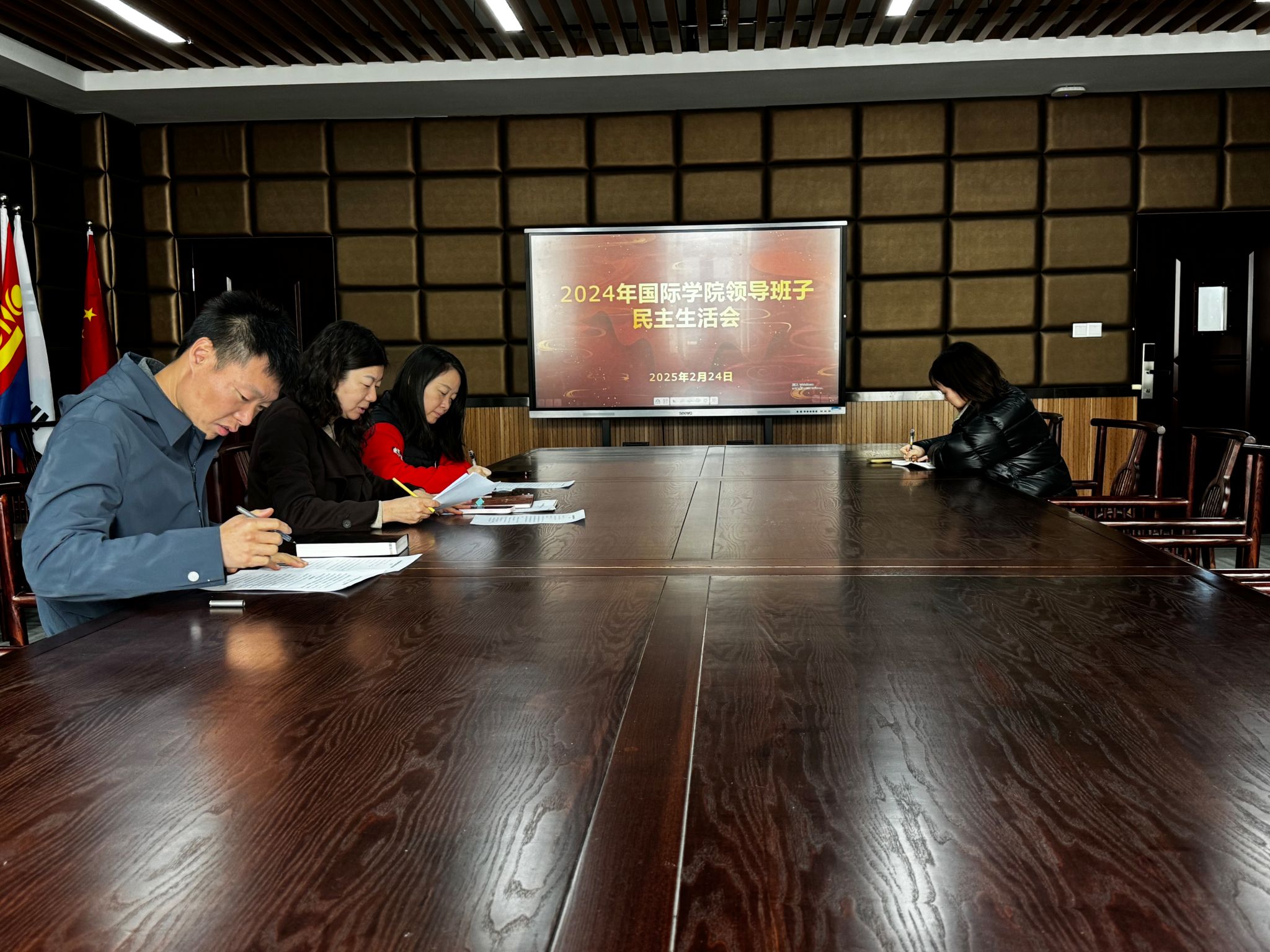 最后,杨霞作总结发言。她对班子提出要求:一是强化理论学习,提升思想引领力。带头严守政治纪律和政治规矩,让“四个意识”“四个自信”“两个维护”“两个确立”入脑入心;二是强化纪律意识,提升风险防范力。持续深入开展党风廉政建设,加强对重点领域和关键环节的监督管理。三是强化责任担当,提升创新驱动力。深入对习近平总书记关于教育的重要论述的理解,借鉴兄弟高校宝贵的经验,从本校实际出发,探索来华留学教育新路径。四是强化工作落实,提升组织凝聚力。强化党建引领,把党建工作与业务工作同谋划、同部署、同落实。继续坚持问题导向和目标导向相结合,对照检查中查摆出的问题,立行立改,进一步夯实党的建设基础,提升来华留学教育质量,为公司实现跨越式发展贡献更大的力量。