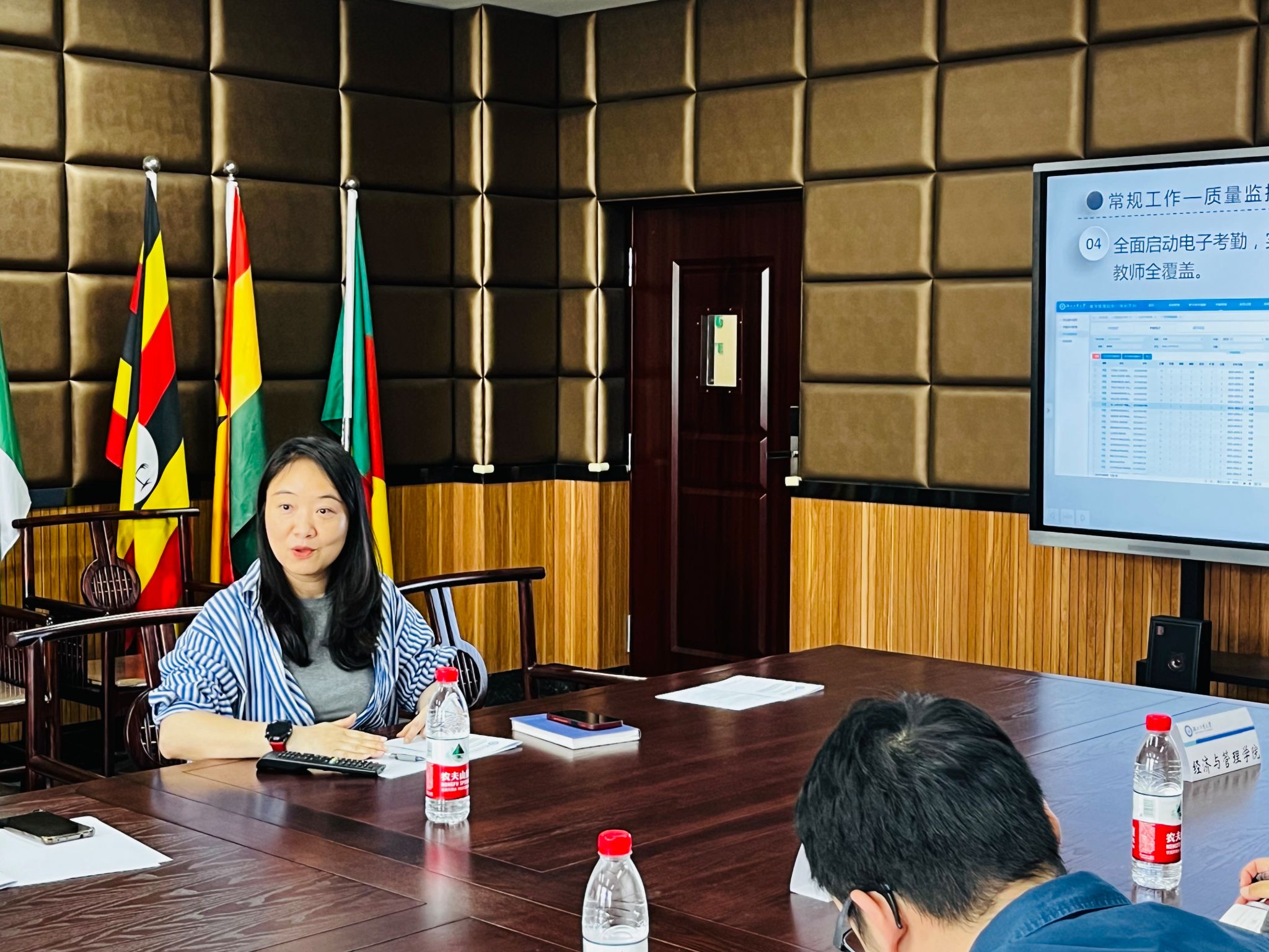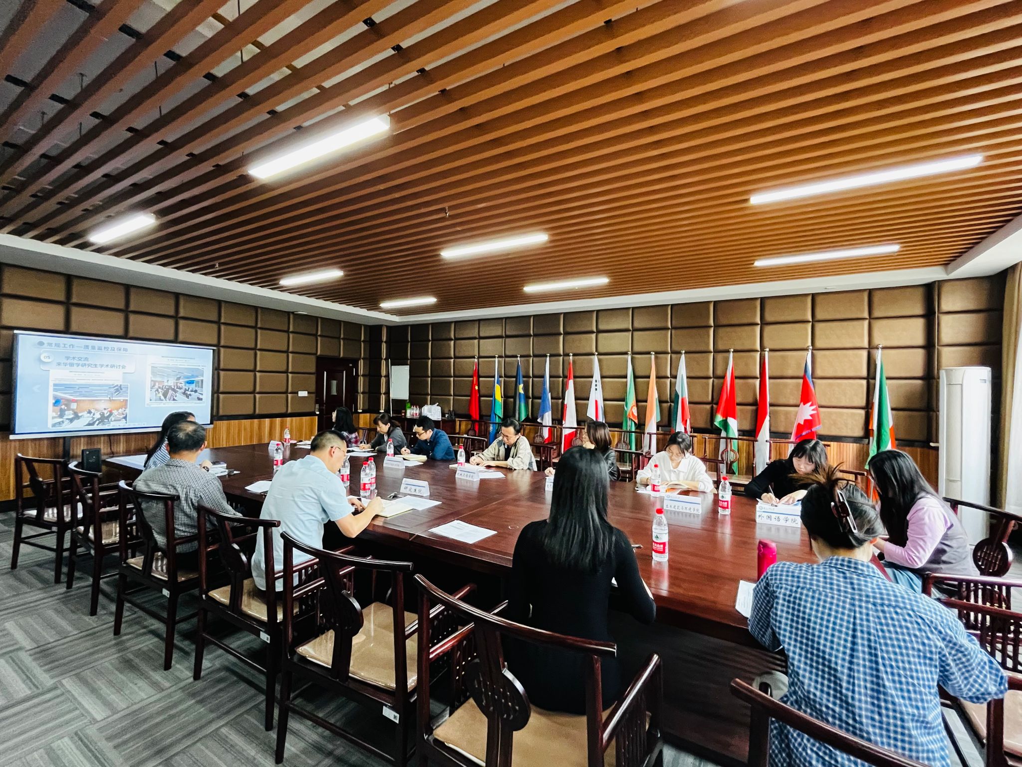 龙曼莉详细汇报了本学期来华职工教学工作的总体情况,详细介绍了课程安排、学籍异动、毕业生工作、质量保障及监控等常规工作,并就各类培养经费使用变化、研究生督学、教育部毕业设计(论文)抽检、学科竞赛等重点工作进行了详细解读。龙曼莉提出了目前来华职工教学工作的三大难点:生源质量和招生规模难平衡、教学管理日趋规范和教学工作缺抓手。参会人员就相关问题展开讨论,对进一步规范教学管理和提高员工培养质量提出了很多建设性意见。
