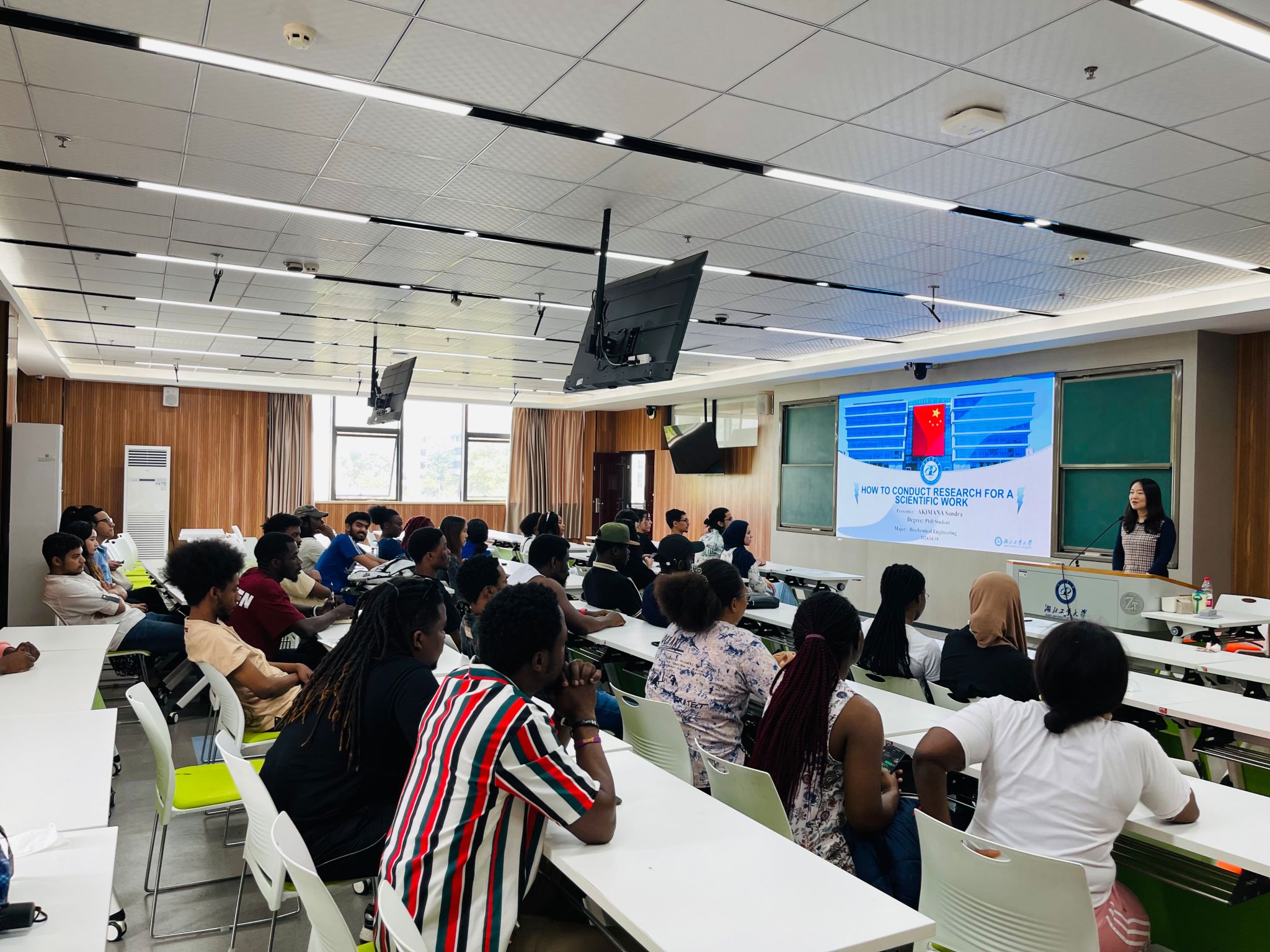 Akimana Sandra将开展科学研究分成确定研究目标、文献综述、提出假设、设计研究方法、收集和分析数据和形成结论六个部分,并结合自己的学术研究经历就每部分如何开展进行了深入探讨。员工们认真聆听了Akimana Sandra的分享内容后展开热烈研讨,从此次学术报告中受益匪浅。学术研讨会是来华留学研究生交流学术思想和学术成果的重要平台,有利于促进跨学科、多领域的交流,是公司提升来华留学研究生创新意识和创新能力的重要举措。