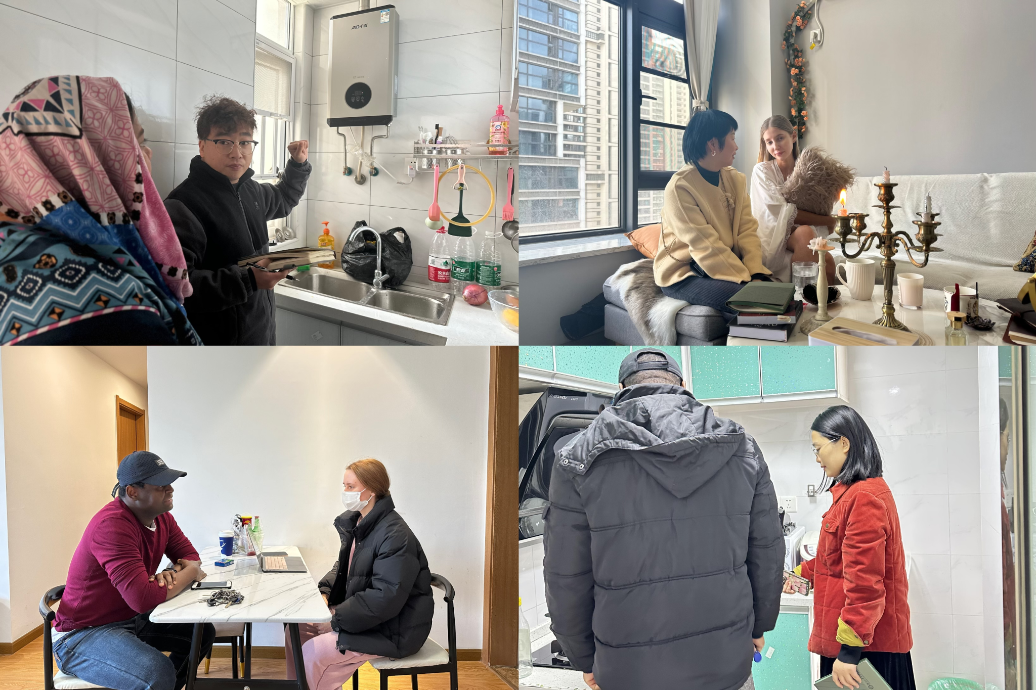 留管老师及班主任老师们对校外住宿国际员工所在的小区环境、合租环境、消防安全等进行全面查看,对校规校纪、相关法律法规进行全面告知,并对员工学业情况、身心健康进行全方位关注,对校外住宿员工所反映的生活与学习问题给与全方位解答。