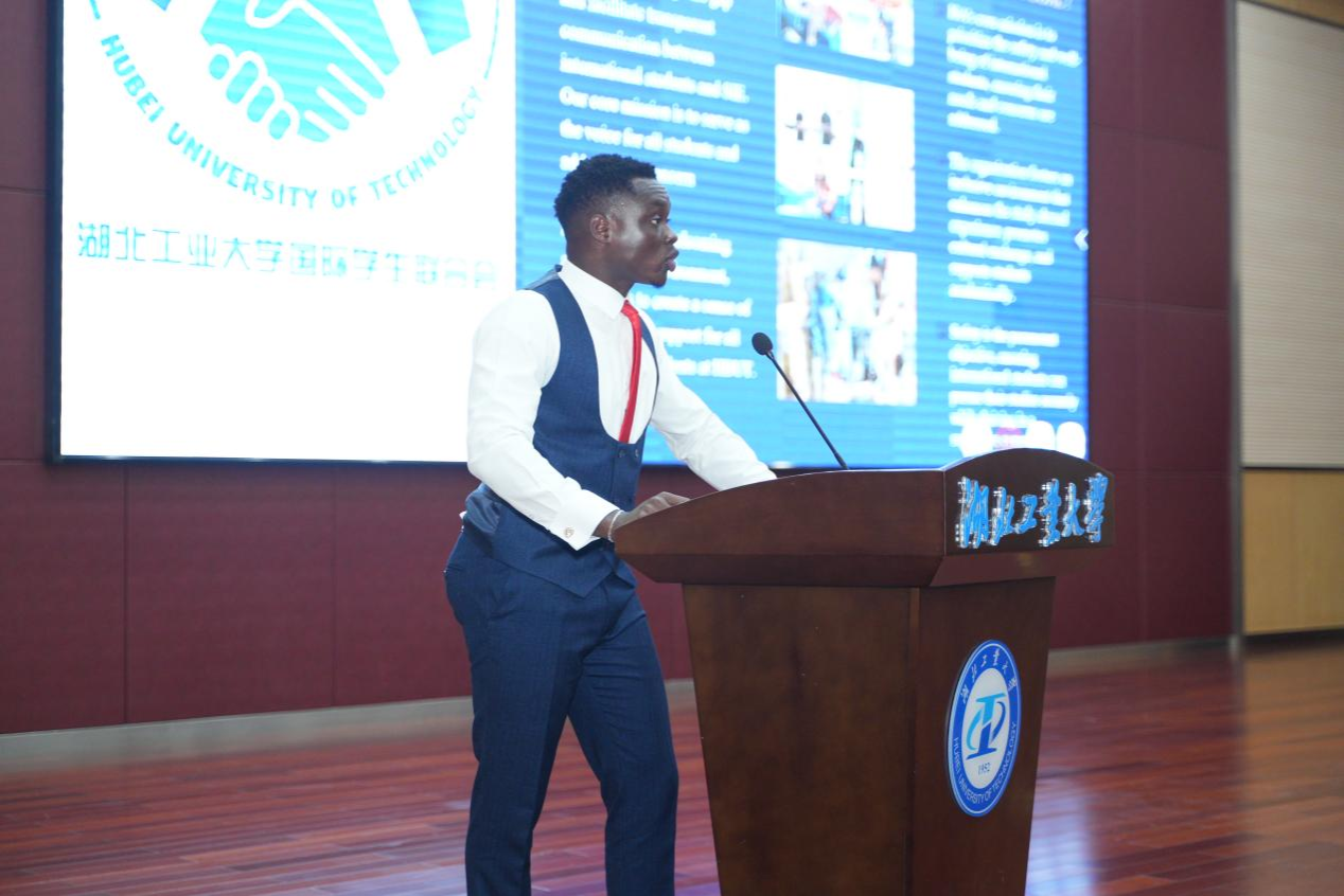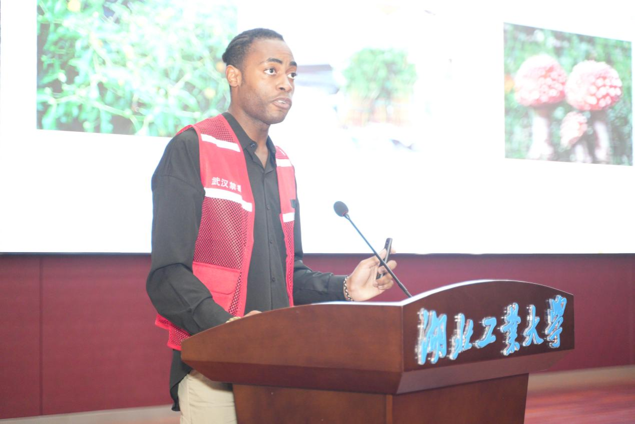 在禁毒宣讲环节,洪山区禁毒办外籍禁毒知识志愿讲解员、公司2022级硕士研究生弗兰克林代表洪山区禁毒办向全体国际新生进行中国禁毒知识、禁毒政策以及相关法律规定的宣讲,并就如何识别毒品、远离毒品、增强自我保护观念进行重点强调。
