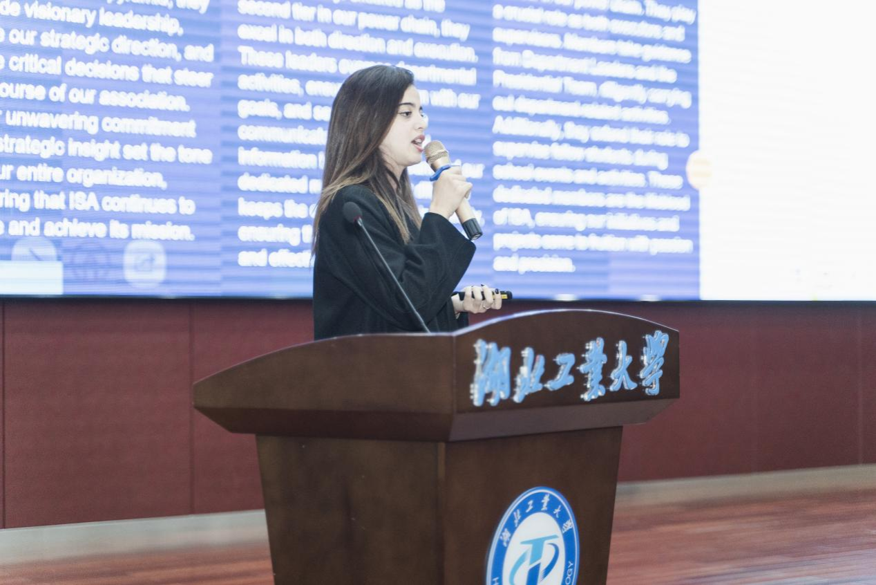 在第五届国际员工联合会招募环节,伊思和莫桃两位副主席分别就国际员工联合会发展历程、组织领导以及招新流程进行宣讲,鼓励更多新生加入国际员工联合会,为公司的发展贡献自身应有的力量。