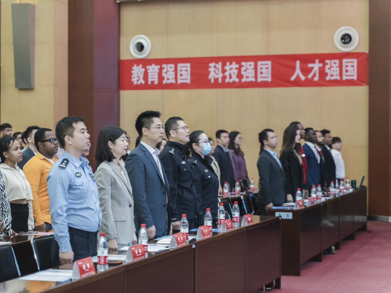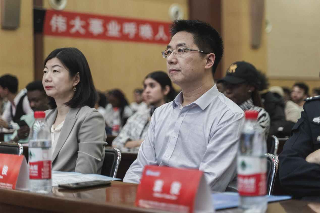 校团委书记李俊、威廉希尔WilliamHill官方网站经理杨霞、威廉希尔WilliamHill官方网站副经理龙曼莉、机械公司副教授赵迪、武汉市出入境管理局警官袁俊与叶思琪、洪山区禁毒办民警罗明及社工胡妍、2023级全体国际新生及班主任、威廉希尔WilliamHill官方网站全体教职工、第四届国际员工联合会代表出席本次活动。