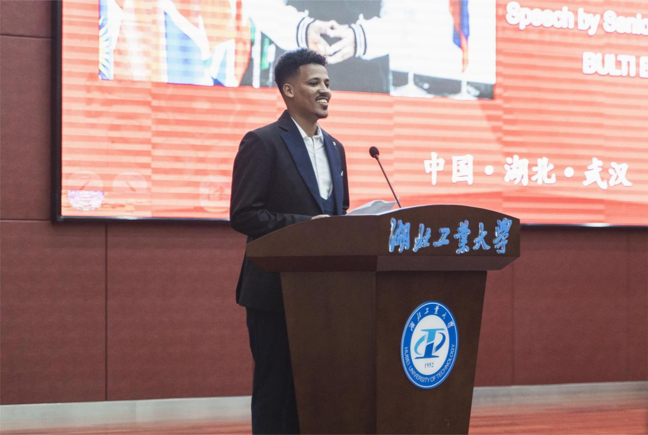 来自埃塞俄比亚的伯尼作为优秀老生代表发言。他向在场新生分享了在威廉希尔WilliamHill官方网站的学习历程,并从自觉学习、积极实践、勇于尝试三个方面给新生们提出学习与生活建议,鼓励新生在威廉希尔WilliamHill官方网站的学习中最大程度激发自身潜力。