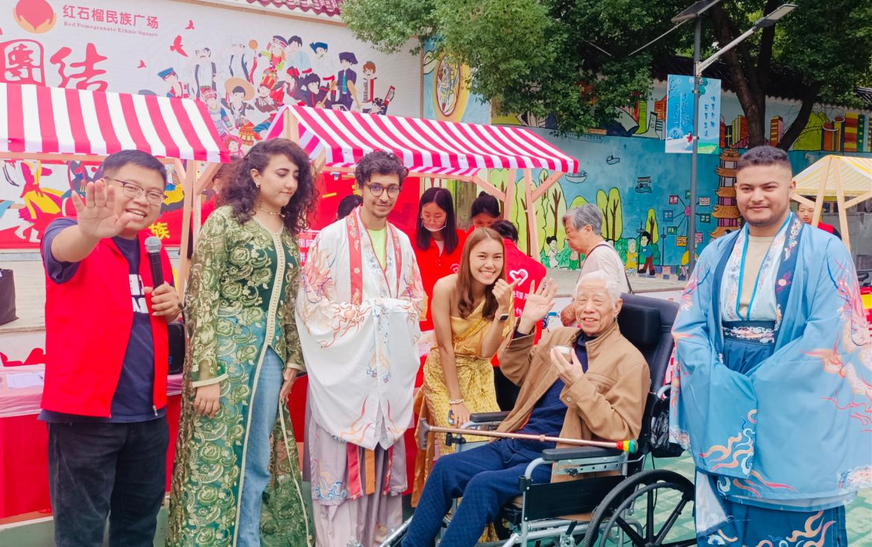9月27日上午,来自摩洛哥的AOUARI ABDELHAMID(韩德来)、KHALIL MEHDI(马迪)、EL-YAHYAOUI HAFSA(傅悠然)以及泰国的LOPLUMLERT PORNPICHA(婧妍)赴宁松社区参加了这次志愿者活动。活动中,四名国际员工与社区居民们一同品月饼、吃蛋糕,在欢乐的氛围中感受中华优秀传统文化的独特魅力。