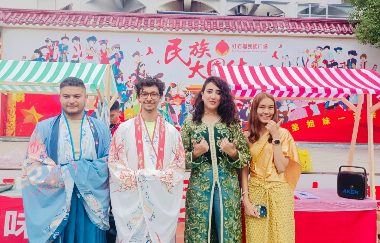 活动伊始,韩德来和马迪同学身穿中国传统服饰汉服,傅悠然和婧妍同学身着摩洛哥与泰国传统服装惊艳亮相。韩德来同学骄傲地说:“我一直以来都很想尝试穿汉服的感觉,今日有幸得以体验,看起来非常棒,这更加加深了我对中国文化的热爱。”