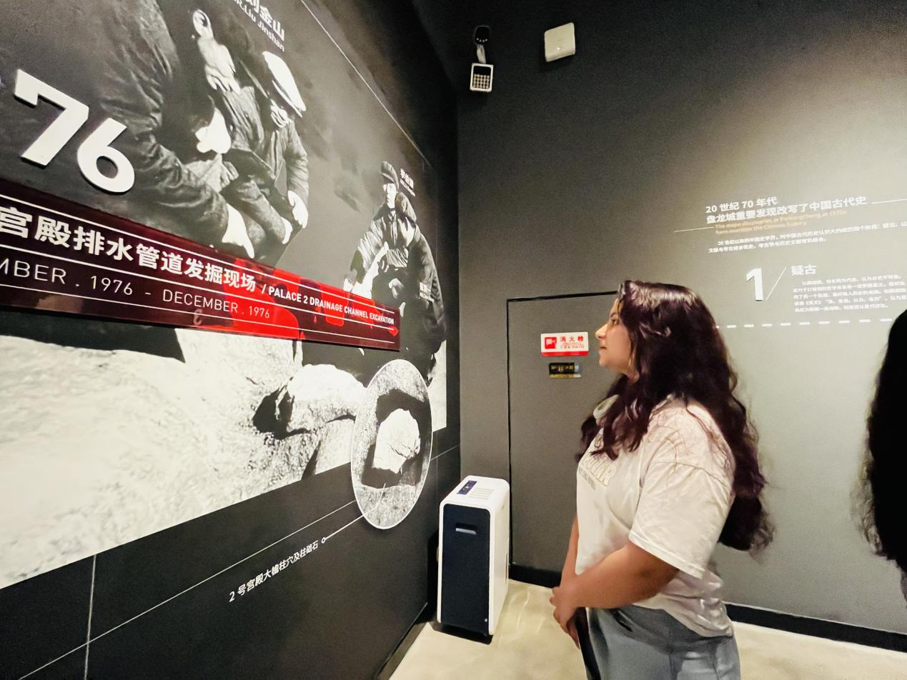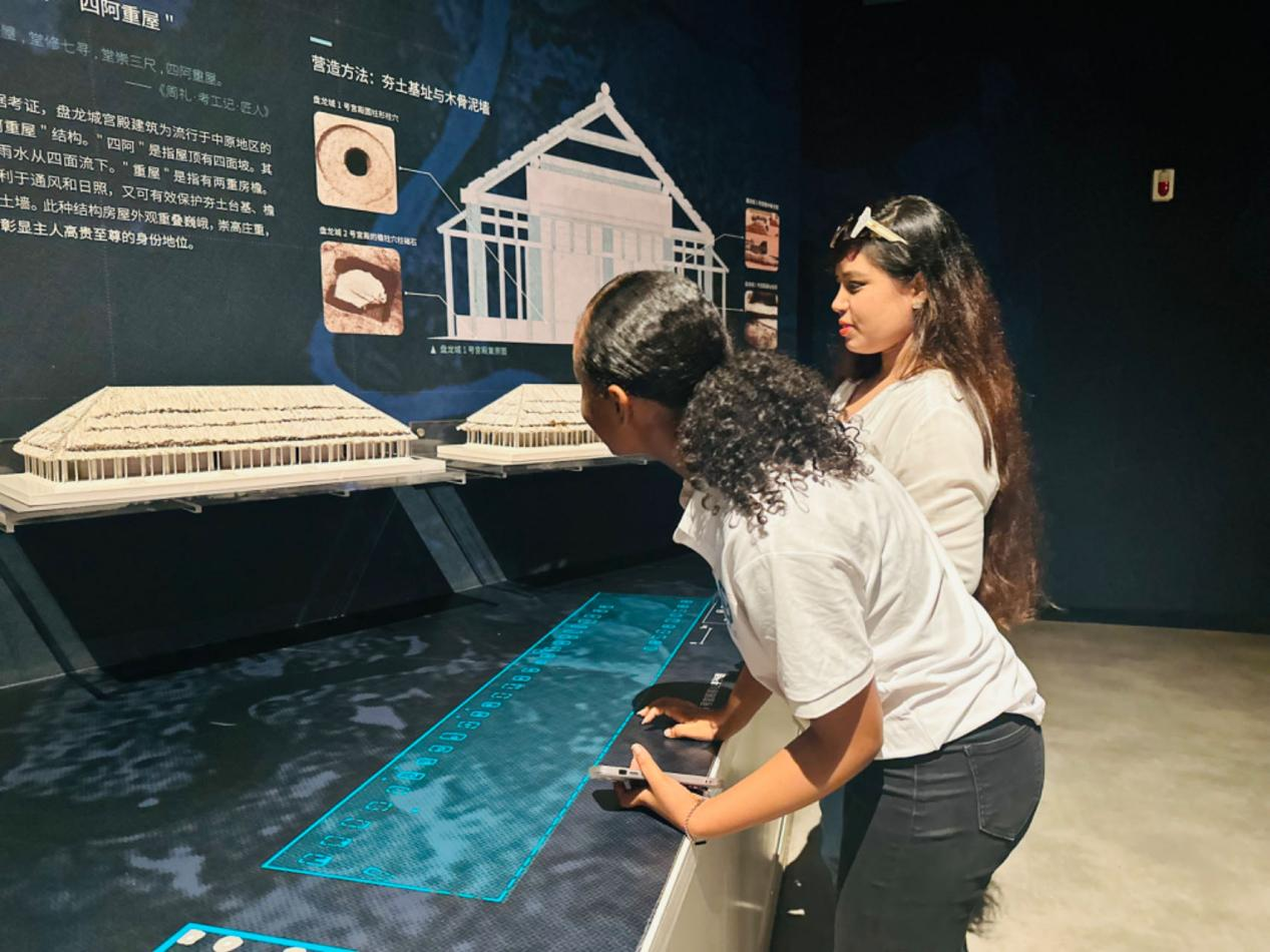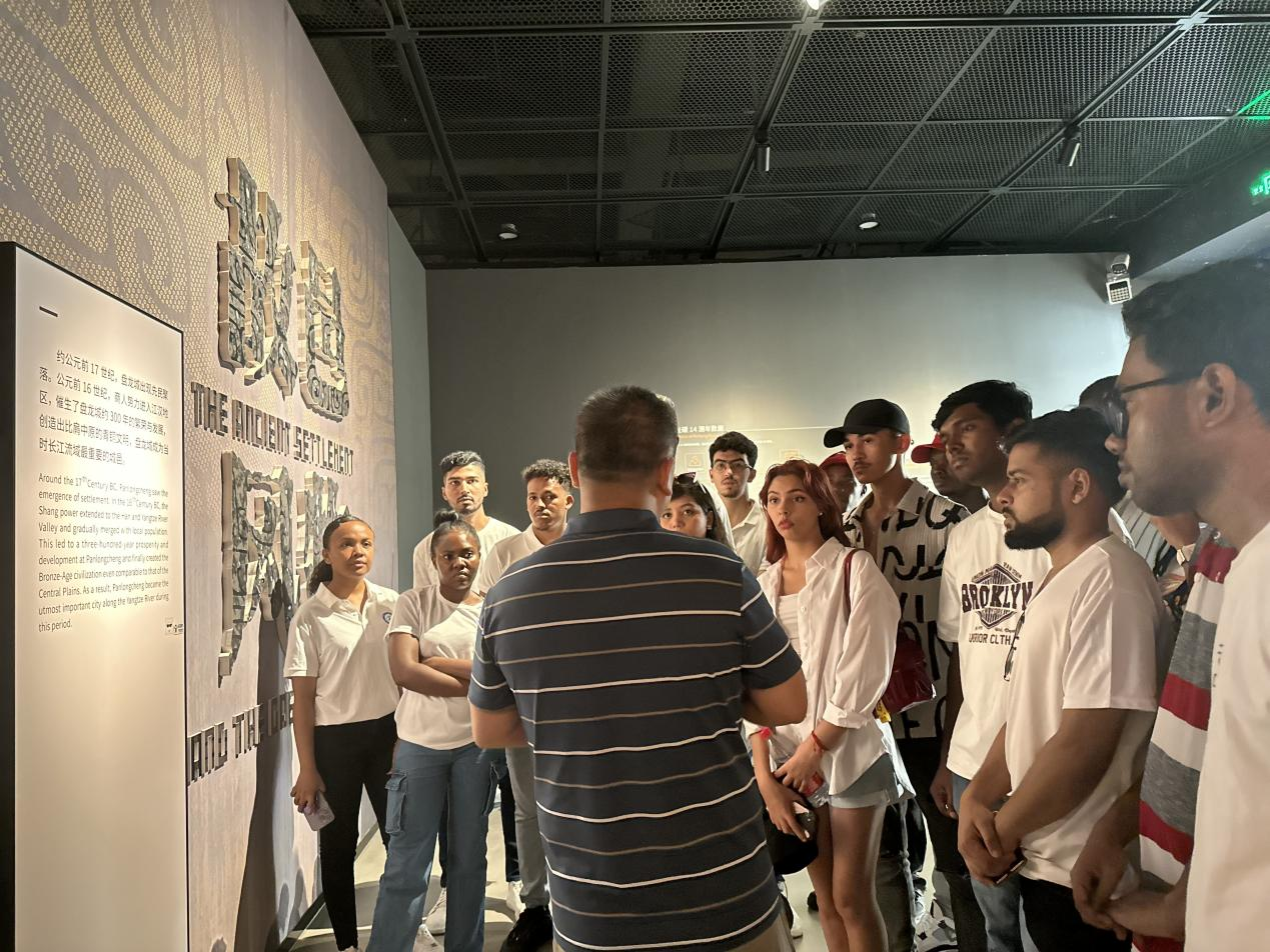 在“浪涛千古”展厅,来自孟加拉国的OMI NAJMUN NAHER(欧蜜)感叹:“此次跟老师们来到这里参观学习,我了解到了盘龙城是中国国家考古遗址公园,也是中国长江流域已知等级最高、遗迹最丰富的商代前期遗址,距今已有约3500年历史,被誉为‘武汉城市之根’。这让我对中国古代的文明智慧和历史有了更加直观的认识!”