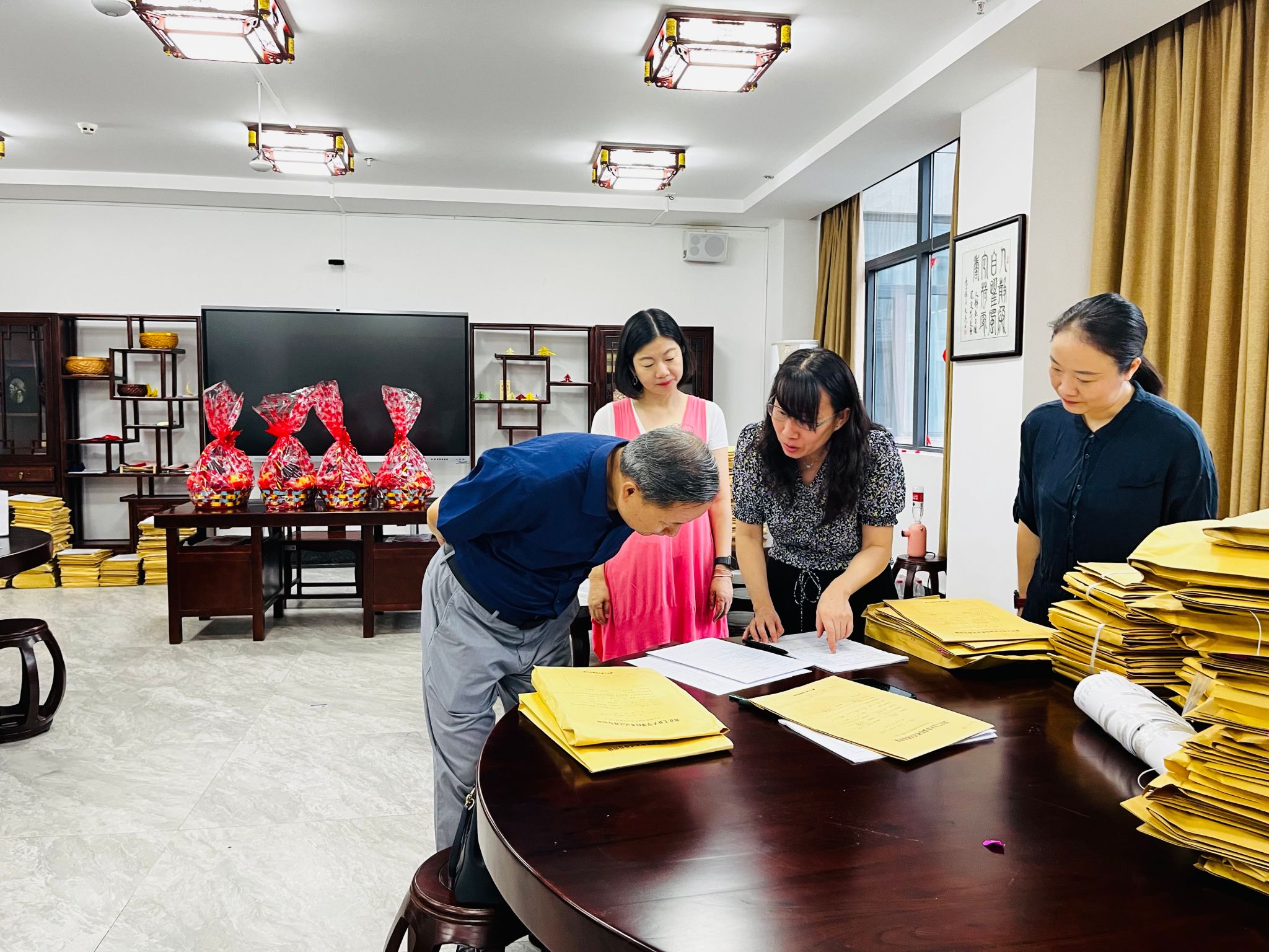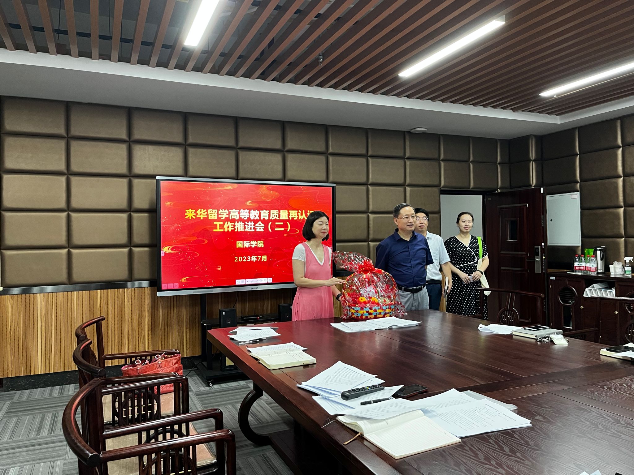 彭书记在威廉希尔WilliamHill官方网站三楼会议室实地了解了来华留学质量再认证工作的进展情况,就质量再认证对来华留学教育工作和公司发展的重要性与公司领导进行深入交谈。随后前往试卷督查现场,对试卷审核标准与教学督导进行沟通,并给予指导。他代表威廉希尔WilliamHill官方网站党政向暑期坚守岗位、紧锣密鼓备战来华留学质量认证的全体教职工表示感谢,并为各位老师送上防暑降温用品。