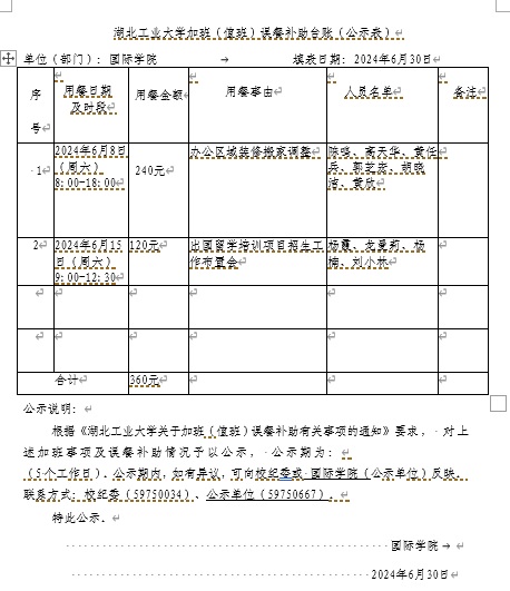 威廉希尔WilliamHill官方网站加班(值班)误餐补助台账(公示表)