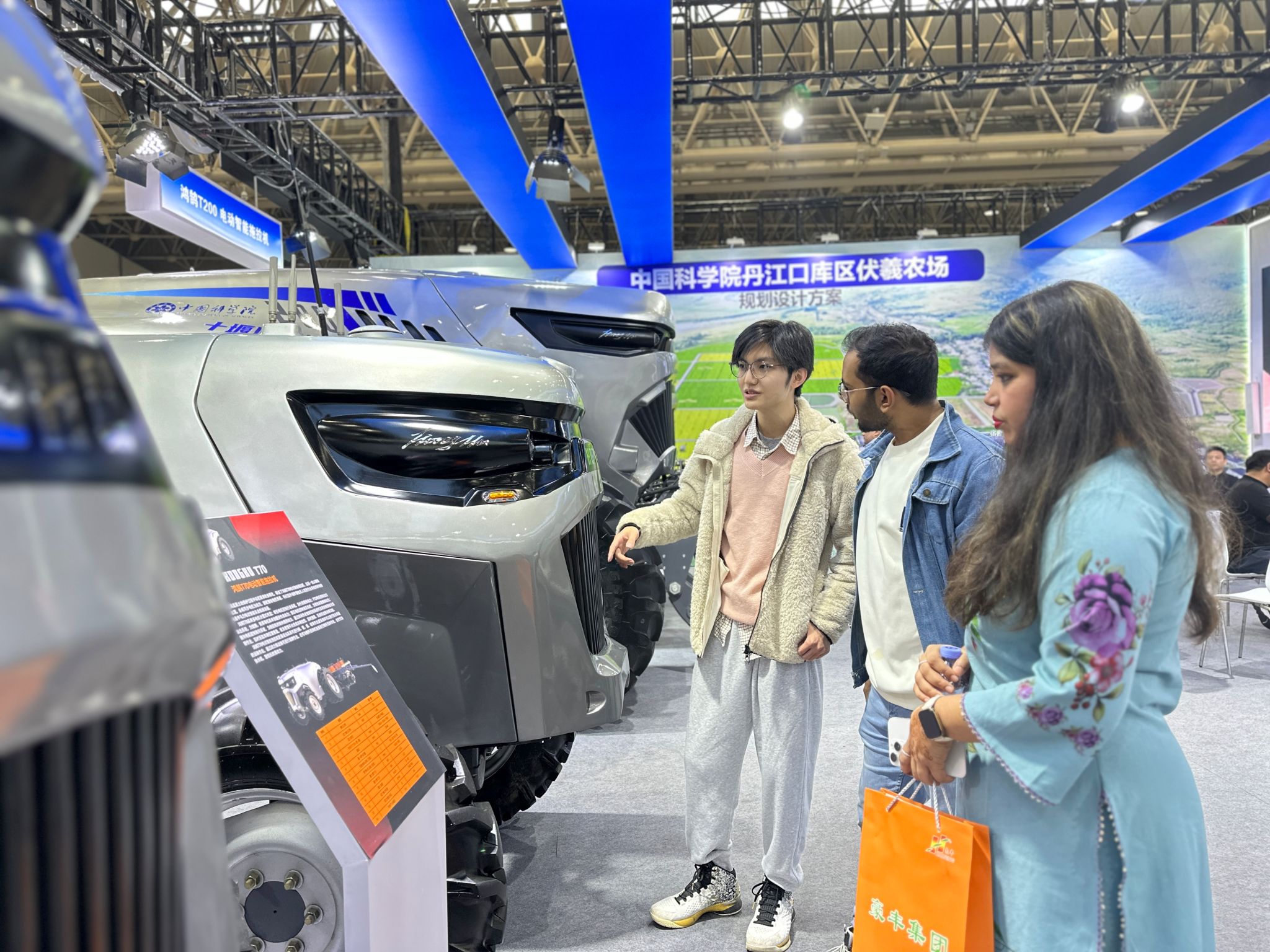 Upon entering the exhibition hall, the international students' attention was immediately captured by the diverse display booths. Cutting-edge exhibits ranging from new-energy agricultural machinery to smart farming solutions created a visually immersive experience that left them thoroughly engrossed.