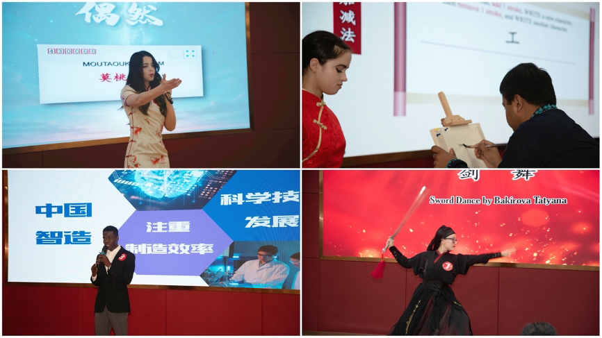 在现代诗朗诵环节,选手们带领现场师生一同沉浸于汉语的诗情画意之中,向广阔生活敞开最热忱的胸怀;在主题演讲环节,选手们从“中国速度”“中国力量”“中国智慧”和“中国方案”四个角度讲述了当代中国工业发展的蓬勃面貌,传递出对中国的深情厚意;在中国语言文化问答环节,选手们认汉字,写汉字,读古诗,讲文化,听乐器,唱中文,各显其能,精彩纷呈。在三个比赛环节后,两位选手还给现场带来了视听盛宴,歌舞表演,惊喜连连。