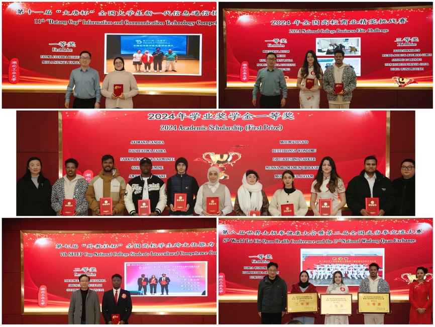 在演讲比赛颁奖典礼前,校学工部、教务处、研究生院、社会资源处、招生与就业指导处、保卫处等部门的老师向公司国际员工颁发了各项学科竞赛与重大活动奖项,鼓励员工们踔厉奋发,更上一层楼。