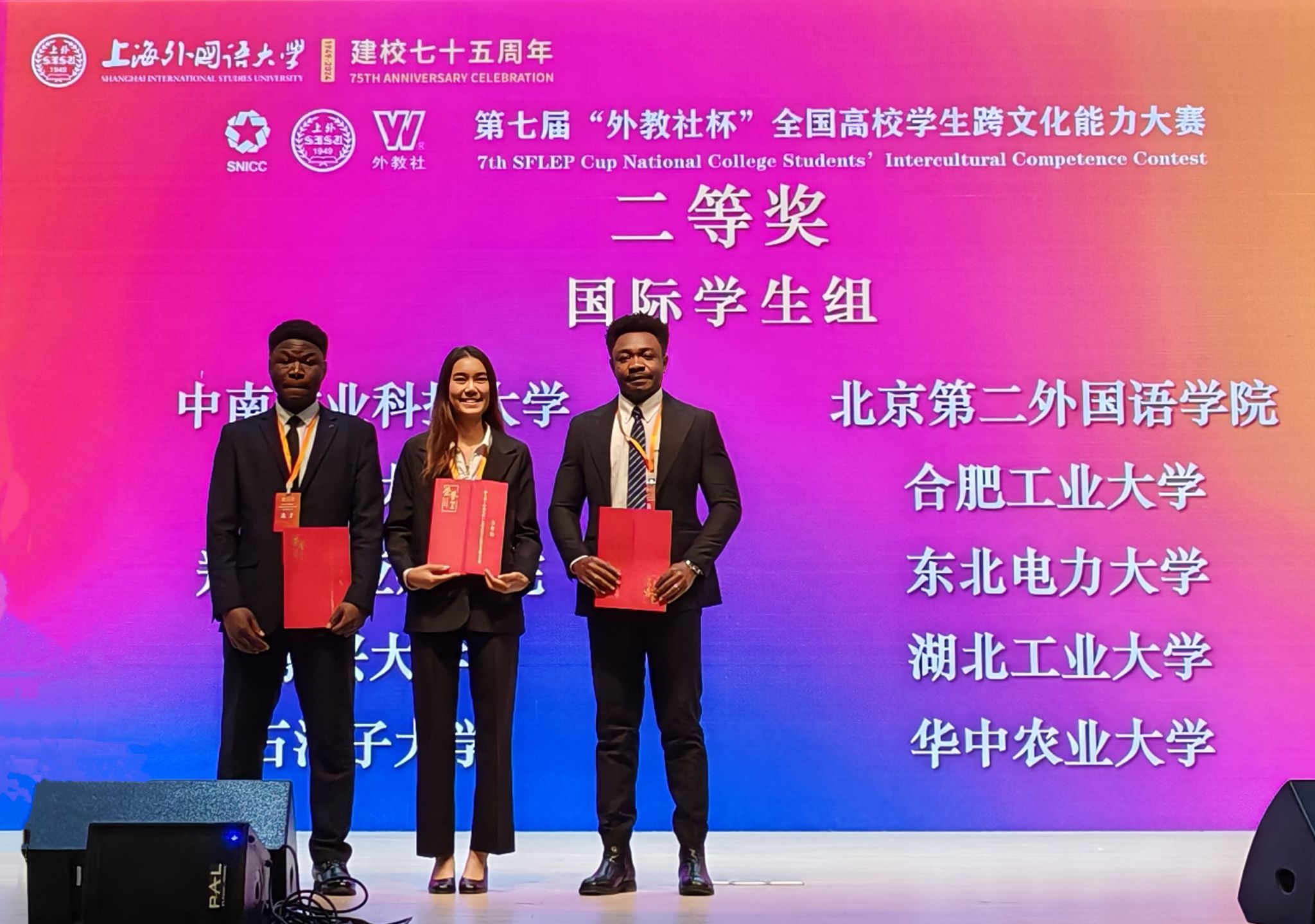 2024年12月1日,第七届“外教社杯”全国高校员工跨文化能力大赛决赛在上海外国语大学圆满落幕。历经校赛与省赛的严格选拔,公司三名国际员工翁静妍(LOPLUMLERT PORNPICHA)祝平安(JIBRIN SALIM ABDULLAHI),弗雷克(OFFIONG NDIFREKE ANIETIE)在全国总决赛中荣获二等奖佳绩。