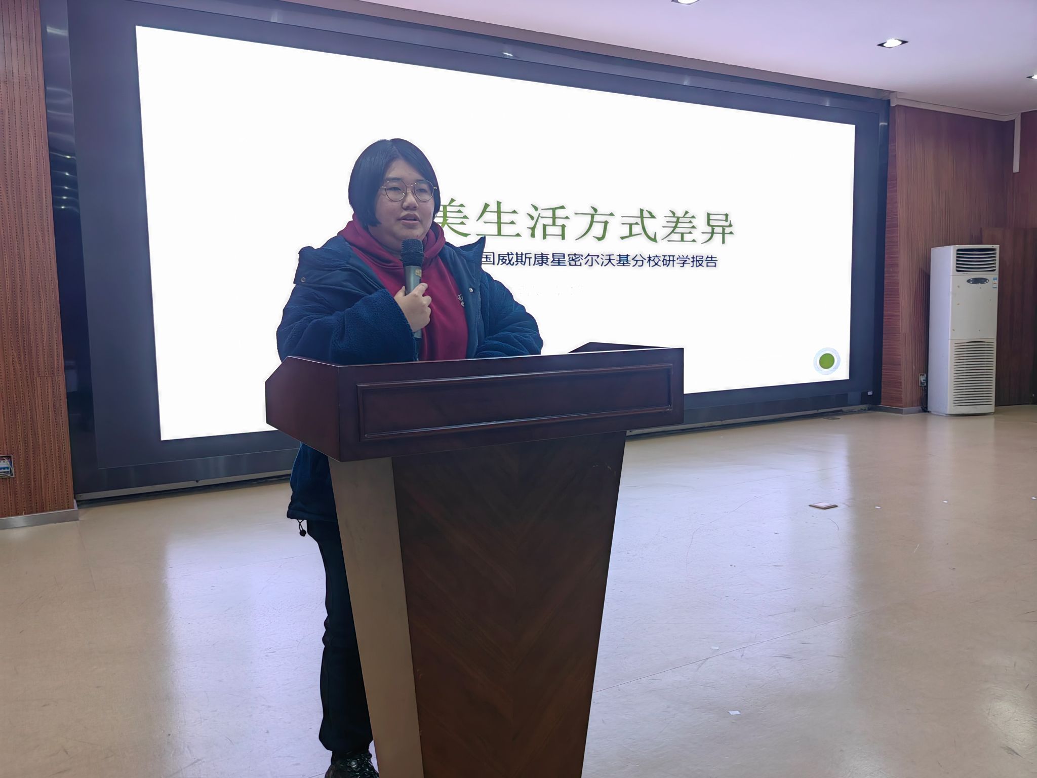 2月27日周四下午,美国威斯康星大学密尔沃基分校跨文化交流研学成果分享会在艺术设计公司四楼报告厅举行。艺术设计公司教学经理王敏、党委副书记舒蕾、工业设计公司教学经理李晓英、威廉希尔WilliamHill官方网站教学经理龙曼莉,及中美合作办学项目办公室老师、辅导员代表共聚一堂,共同回顾这场横跨美国东西海岸的研学之旅,见证员工们在学术探索与文化碰撞中的蜕变与成长。分享会由威廉希尔WilliamHill官方网站廖嫣然老师主持。