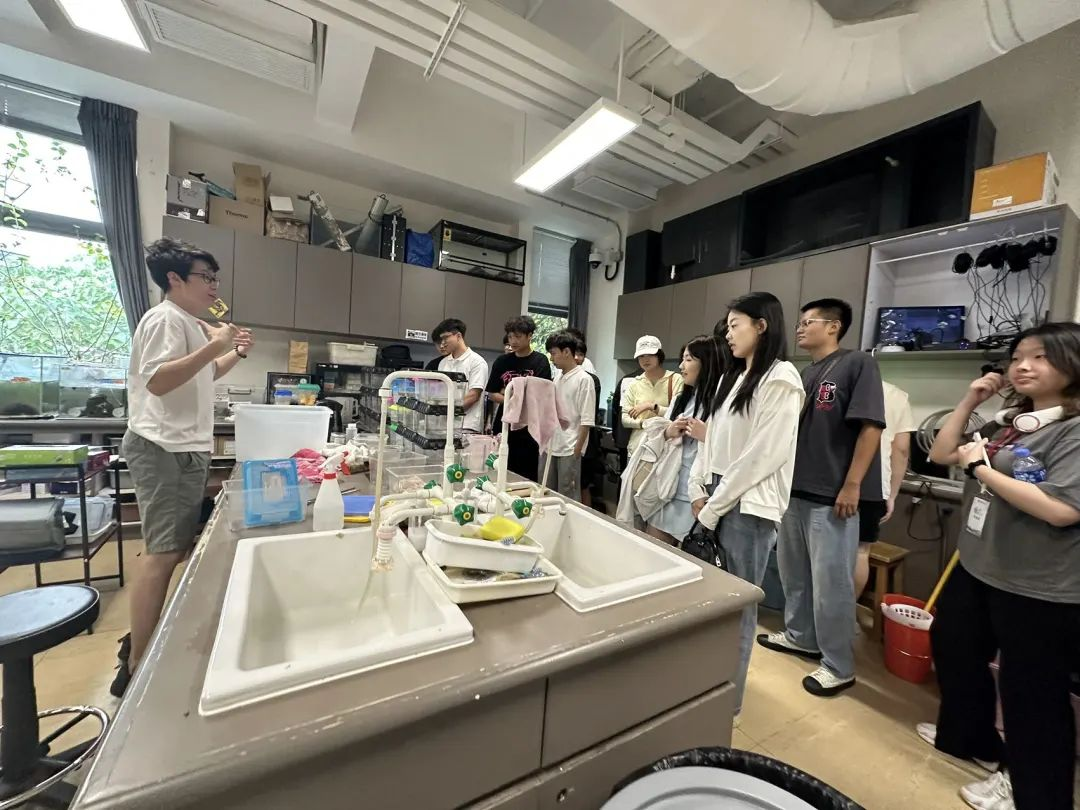 此外,公司还特别安排同学们前往科学教研组研究室参观。老师细心地对同学们感兴趣的各种实验器材进行介绍,同学们动手尝试了部分实验操作。
