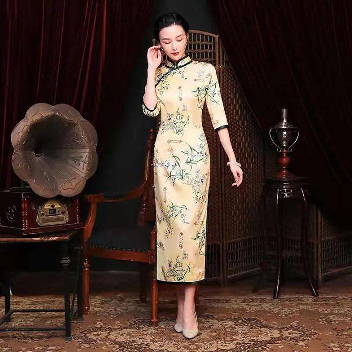 By the end of the 1920s, dressing style was affected by that of Europe and America. The pattern of Qipao was changed significantly. The most common Qipao we see today: slender fit and shorter sleeves, with two long slits at each side of the hem, for convenient movement, but now wonderfully display the slender legs of women. The modernized version is noted for accentuating the figures of women.