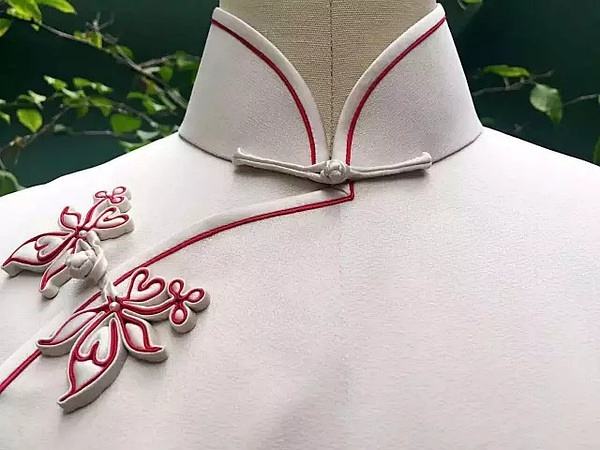 盘扣:是一种源自于中国的纽扣,纽扣用丝线做成,用来固定衣领或者作为一种装饰。盘扣也被广泛的用在装饰旗袍上。