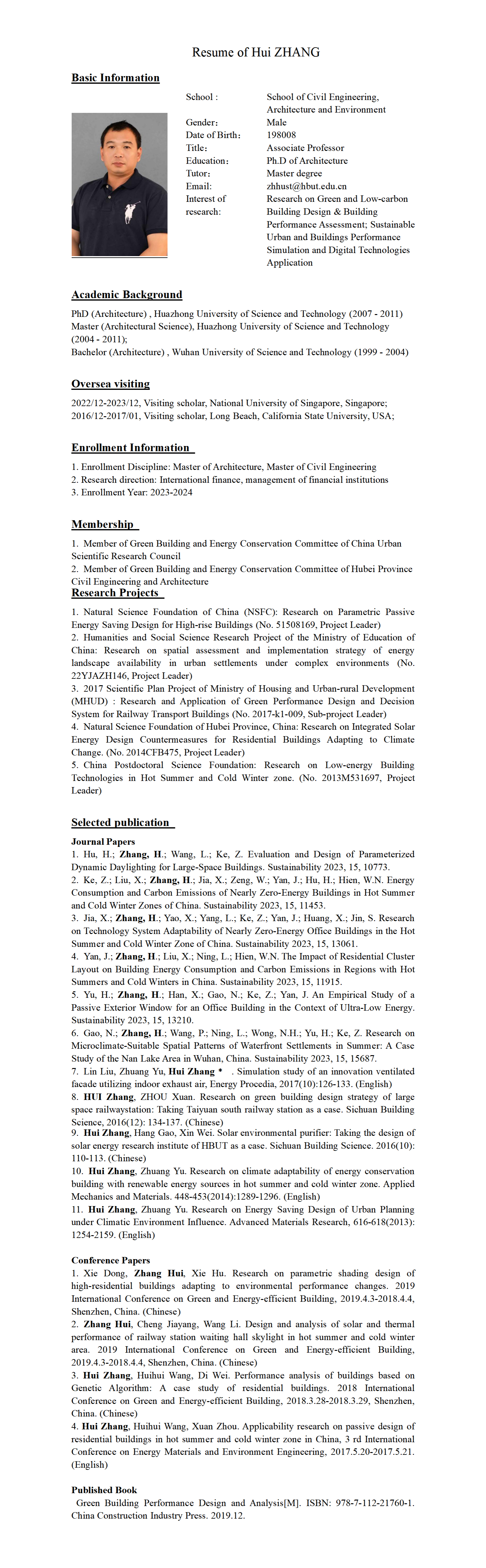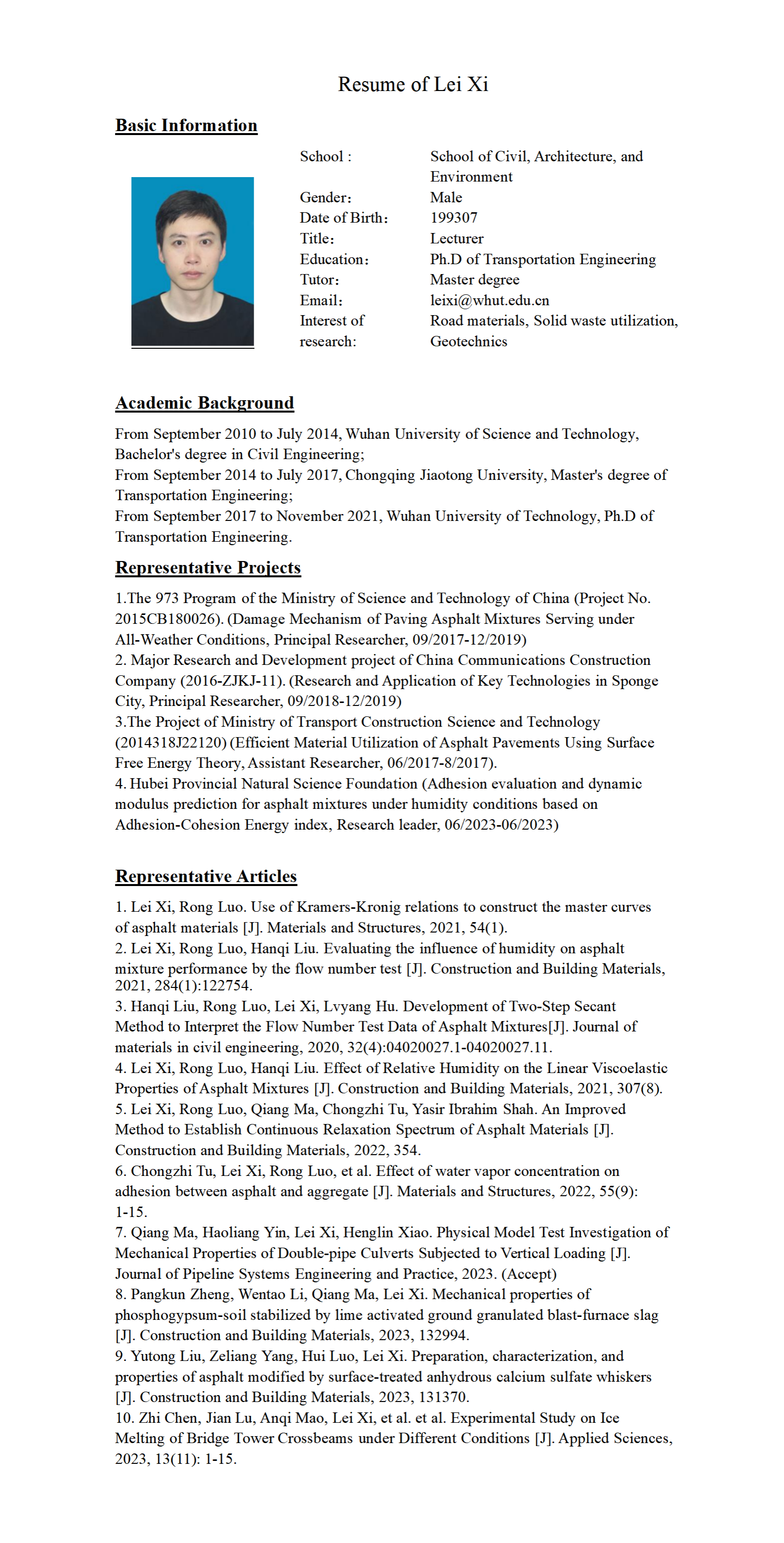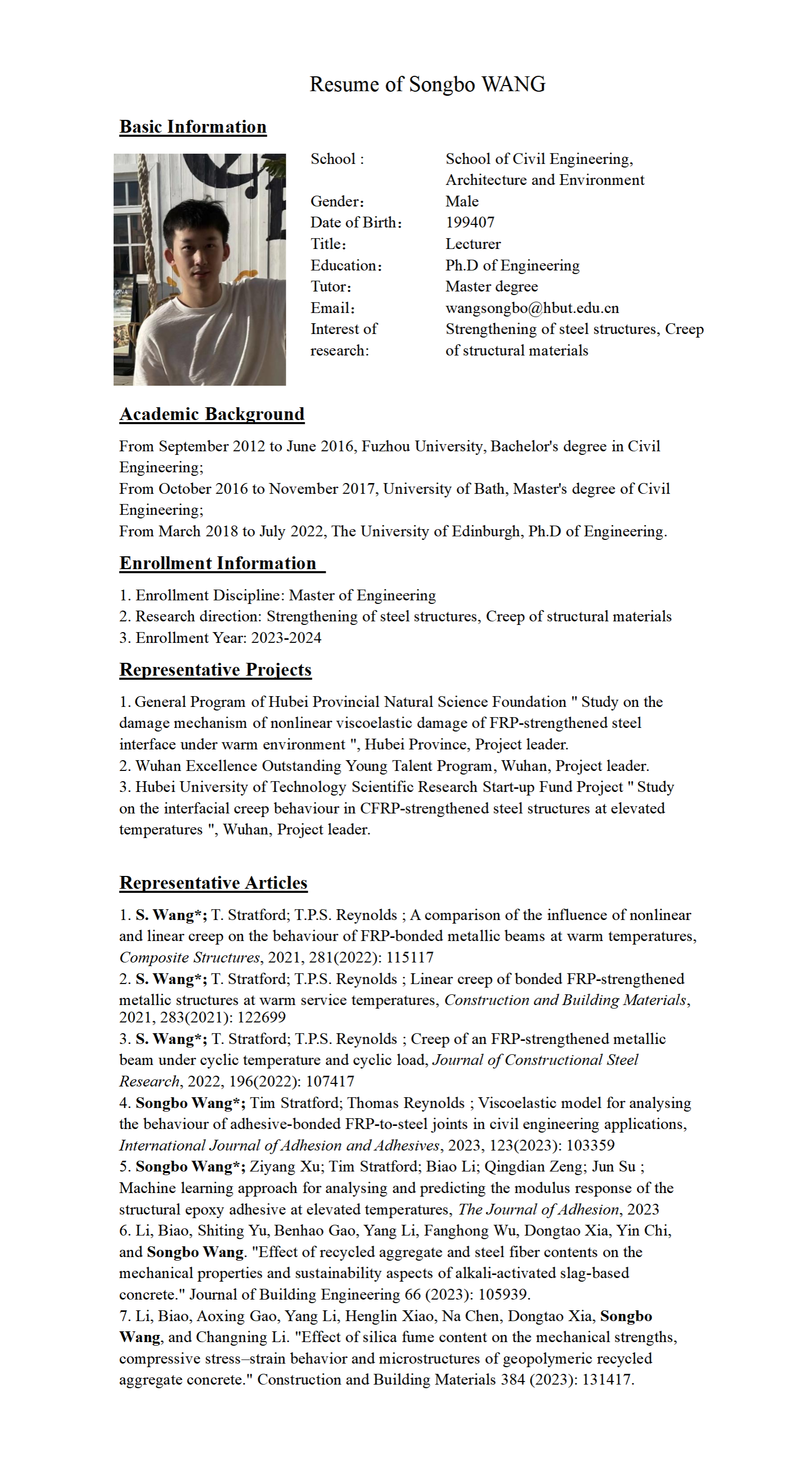 土木建筑与环境公司研究生导师 The Resume of Academic Supervisors from Company of Civil Engineering & Architecture & Environment