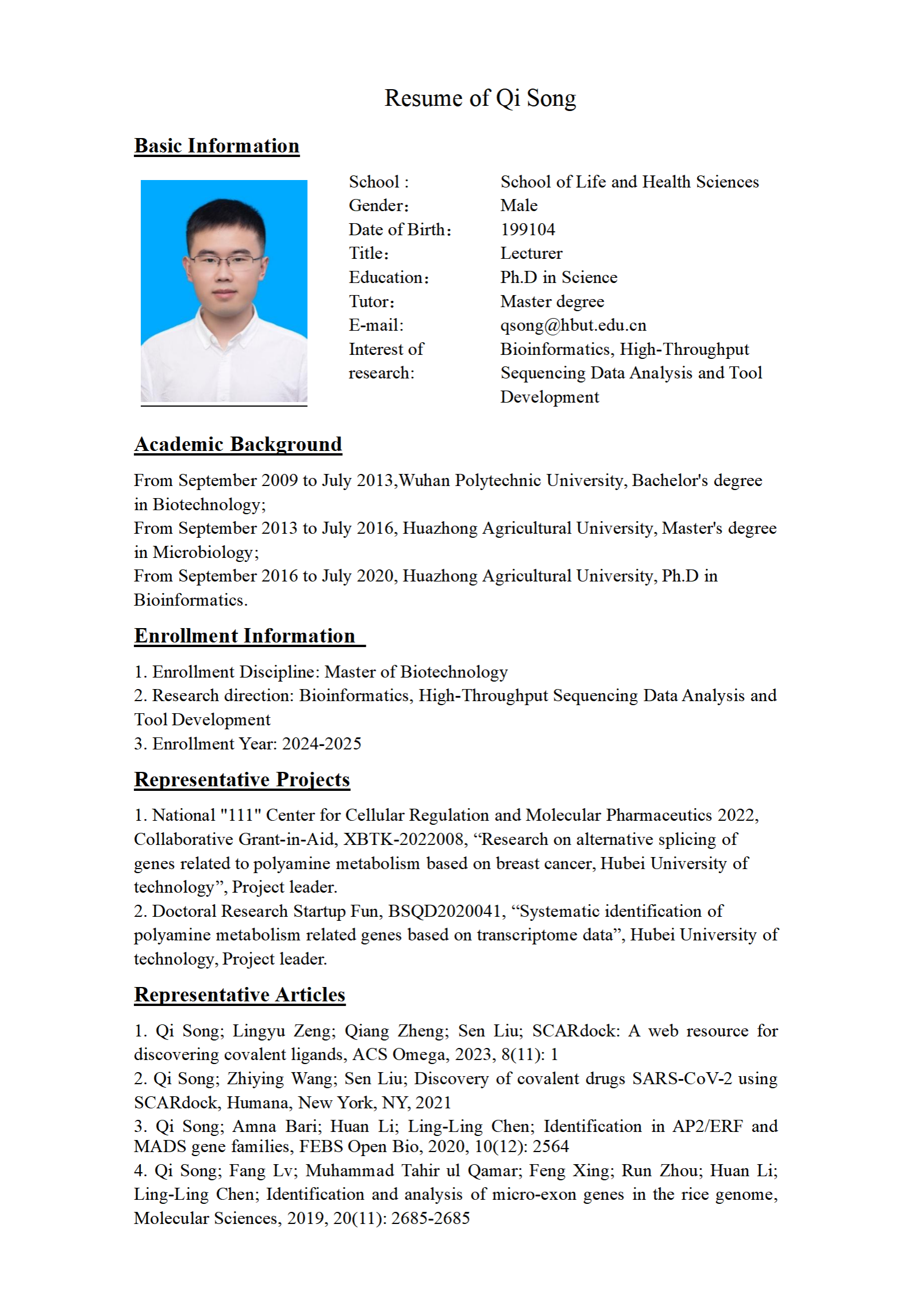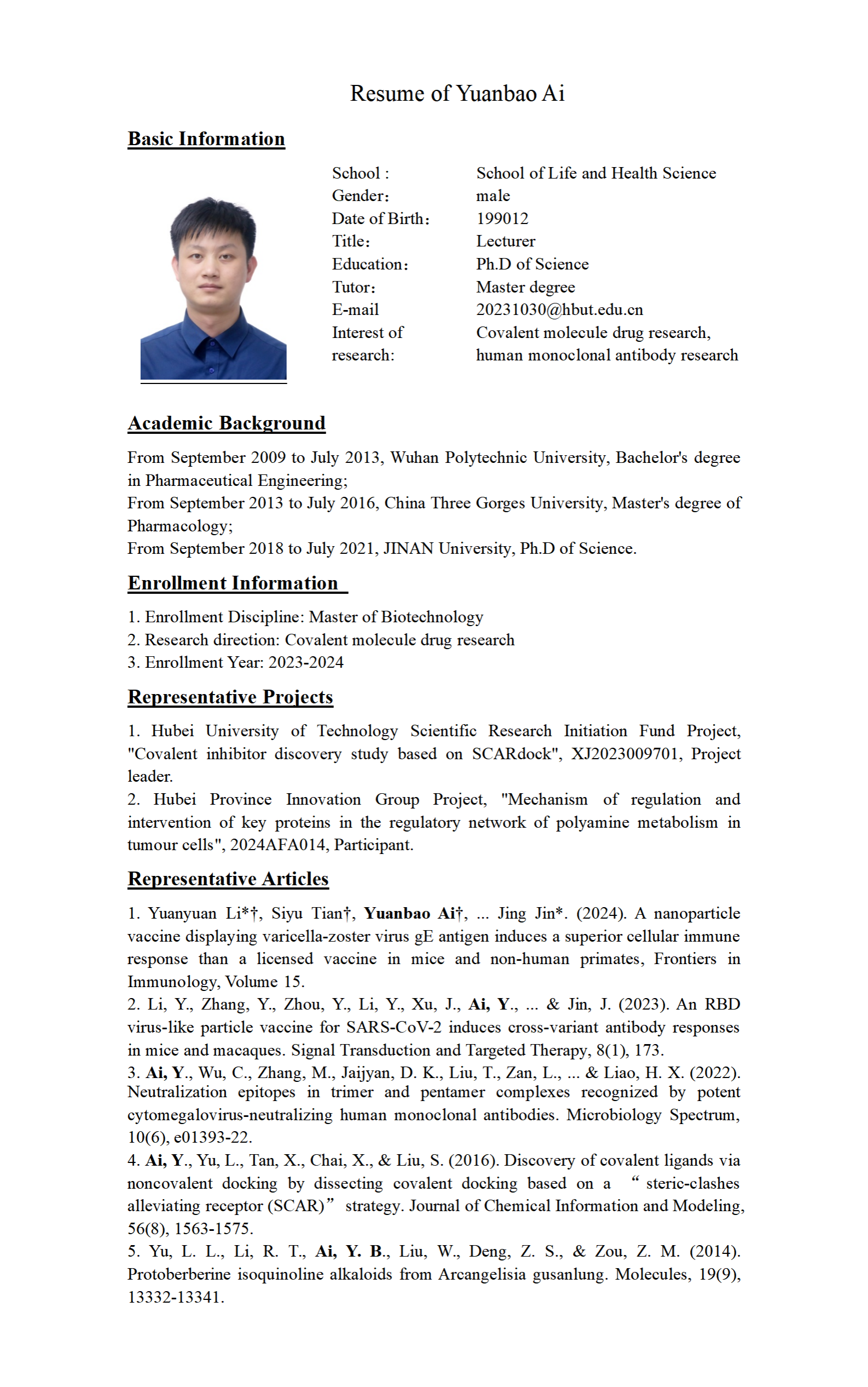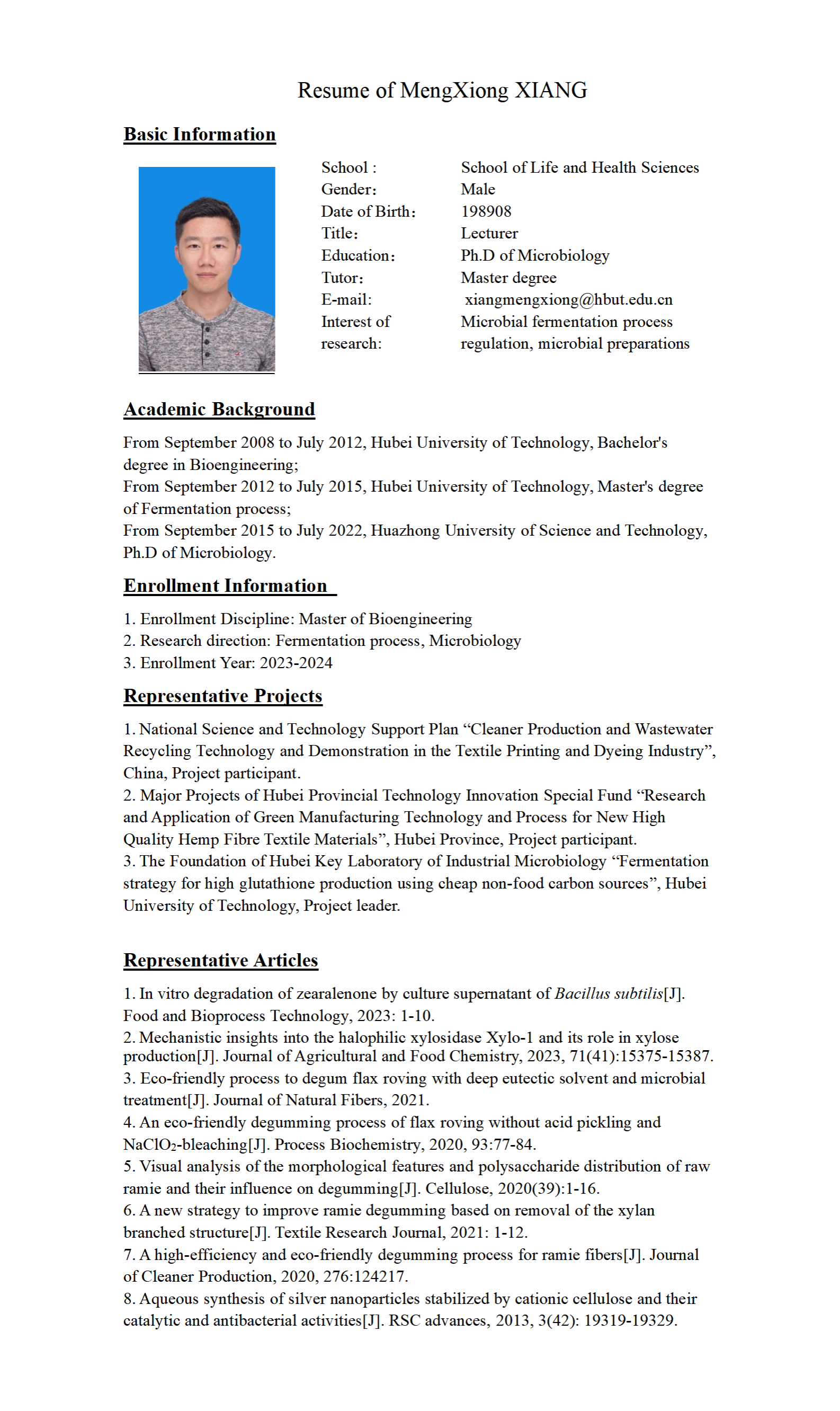 请访问以下网站查询更多导师信息To visit the link to see more: https://life.hbut.edu.cn/szdw/gjjrc.htm