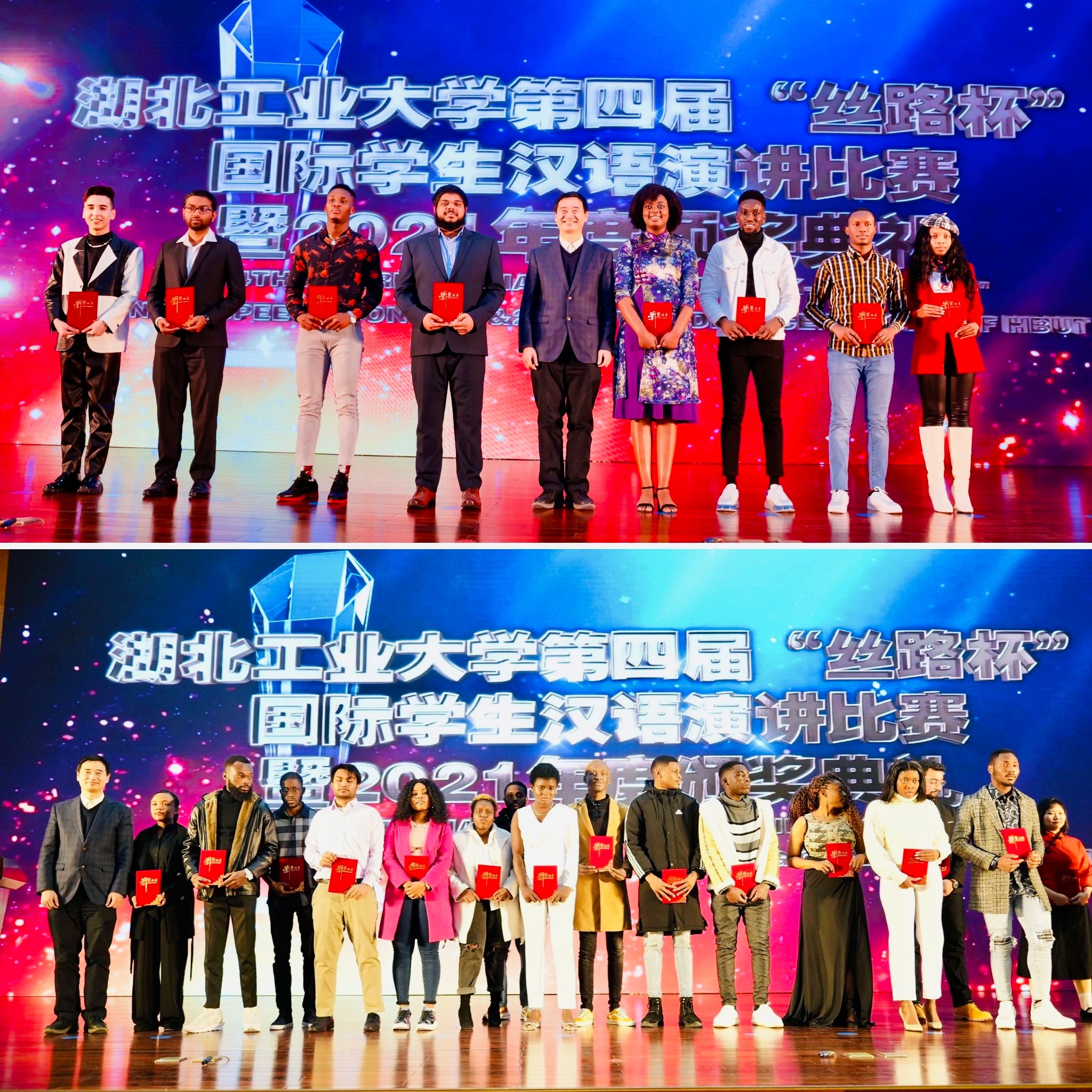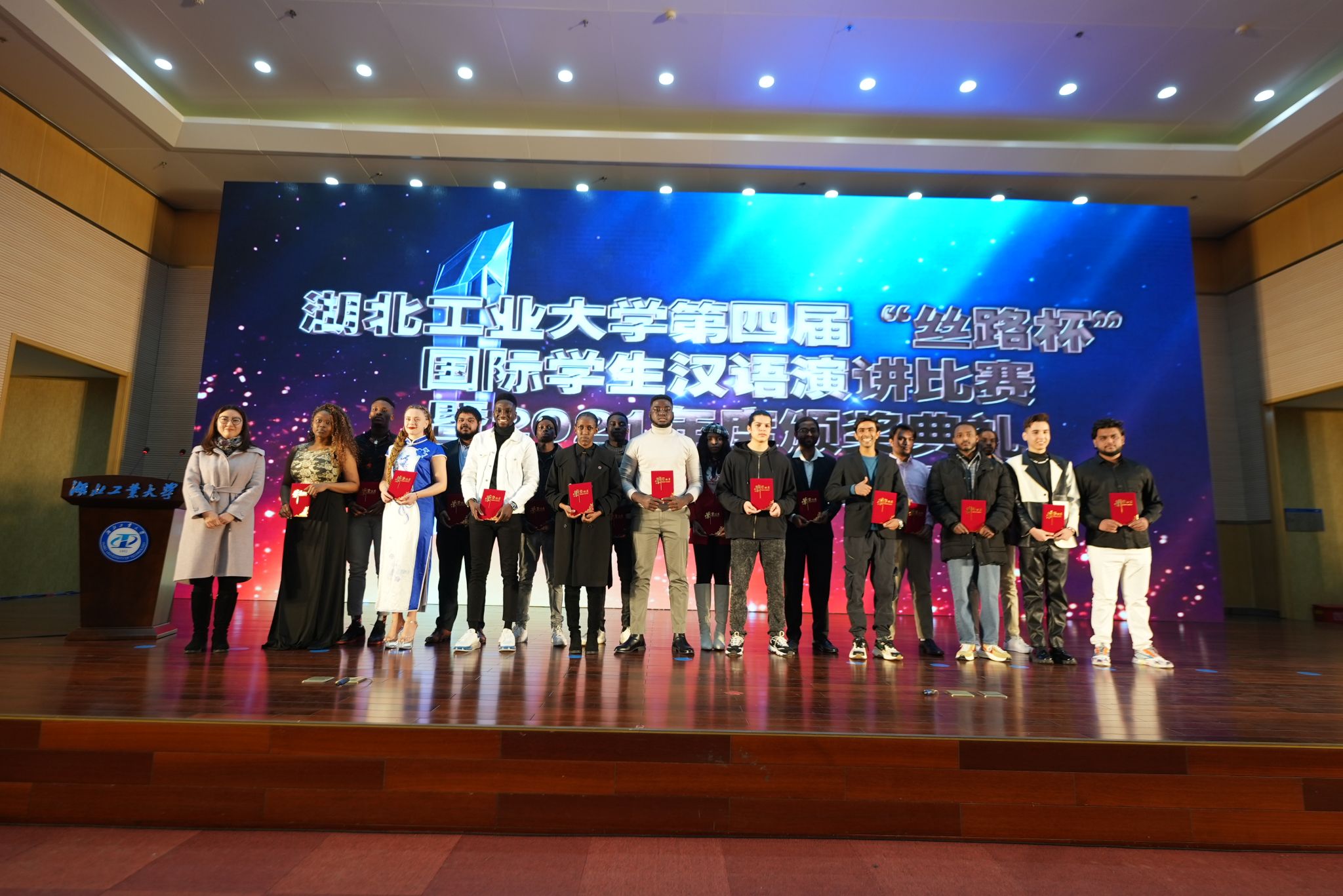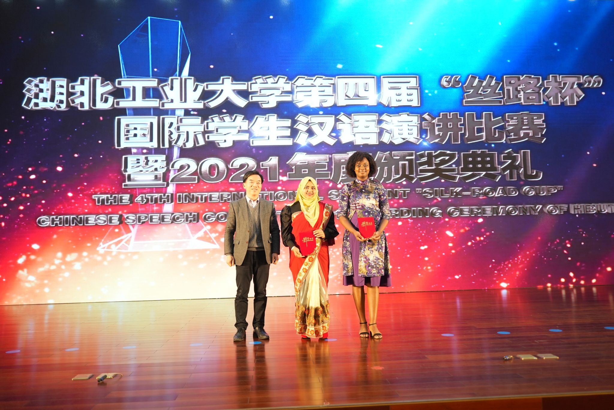 12月30日,威廉希尔WilliamHill官方网站第四届“丝路杯”汉语演讲比赛暨2021年度颁奖典礼在图书馆报告厅隆重举行。威廉希尔WilliamHill官方网站党委副书记、董事长彭育园教授,威廉希尔WilliamHill官方网站党委常委、副董事长宋小春教授莅临活动现场。