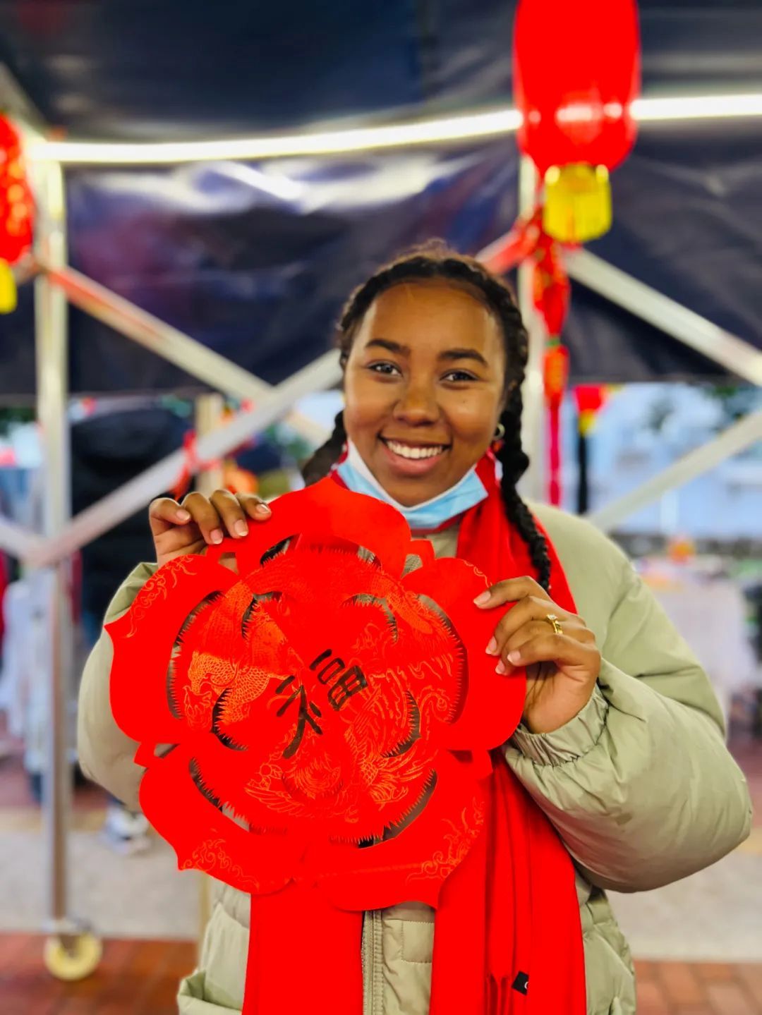 一张小小的纸片,寄托浓浓的祝福,国际员工亲手剪起的纸窗花,在寒风中温暖夺目。