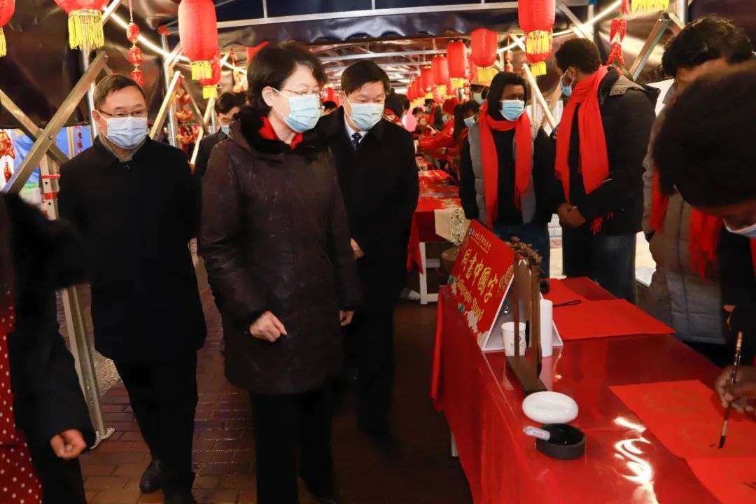 副省长肖菊华特地走到每一个文化展位前,饶有兴致地观看着国际员工编中国结、剪窗花纸、包饺子、做汤圆,与国际员工热情交谈,欣赏国际员工文化作品,关心国际员工生活学习,关切国际员工春节活动获得感,祝福国际员工们在公司过一个温暖而难忘的中国年。