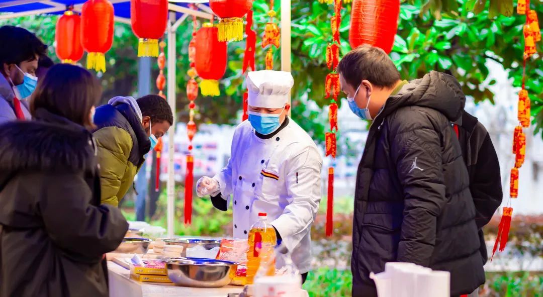 威廉希尔WilliamHill官方网站留管团队严格遵守疫情防控规定,完美策划、精心组织,分批组织员工入场,为在校100多名国际员工送上新春祝福。