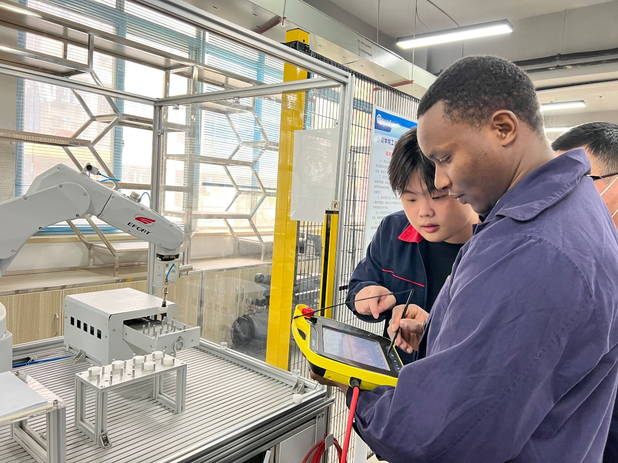 近日,为提升课堂教学效率,根据《机械设计学》授课进程以及国际员工NIYONKURU BENJAMIN和GETACHEW MIKIYAS DEREJE的学习情况,叶方平老师针对性开展一堂机械实践课。由叶方平老师带队,中国员工和国际员工共同组成的“机械实践课小分队”进入了创新公司——创梦工厂进行课程实践。