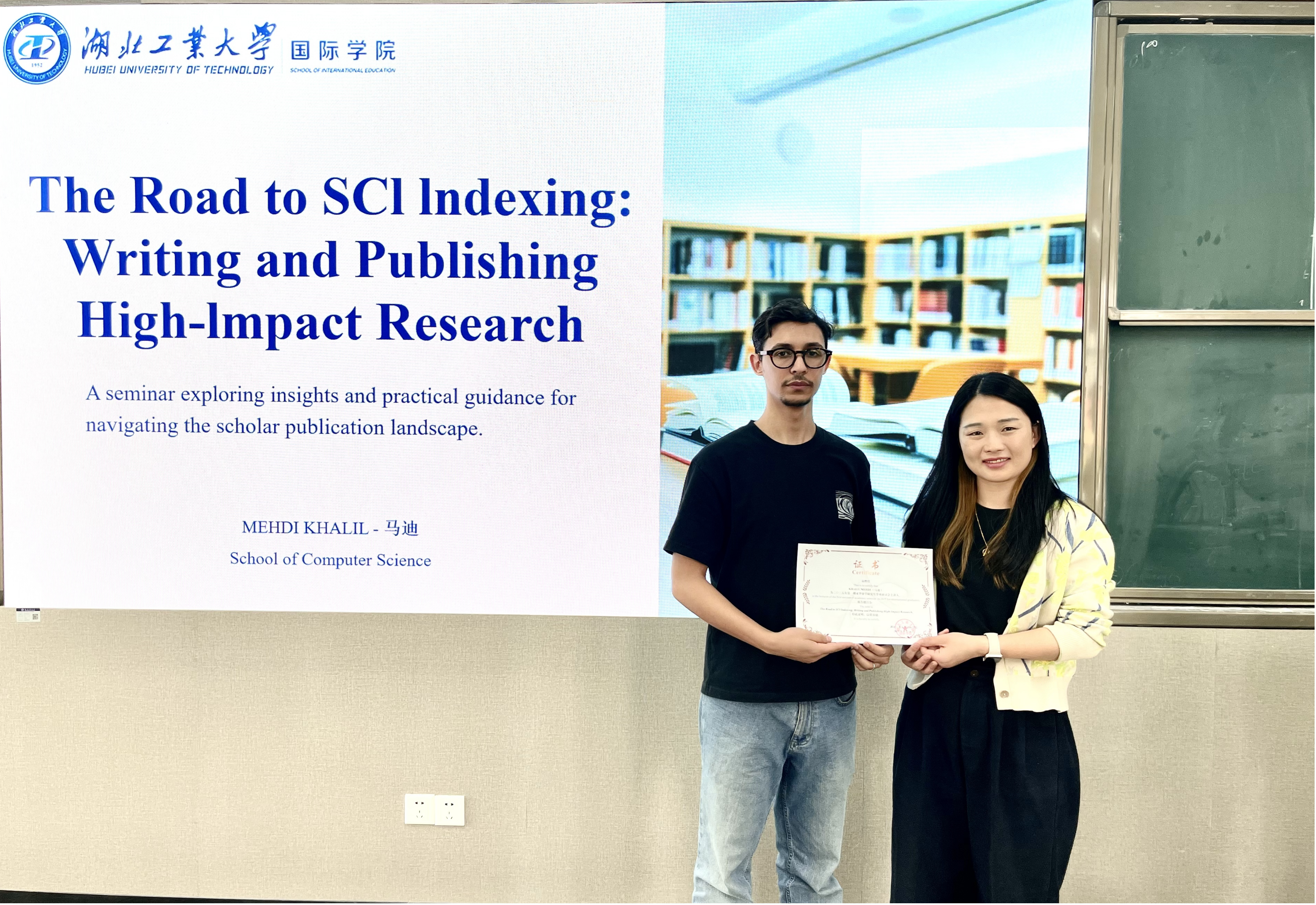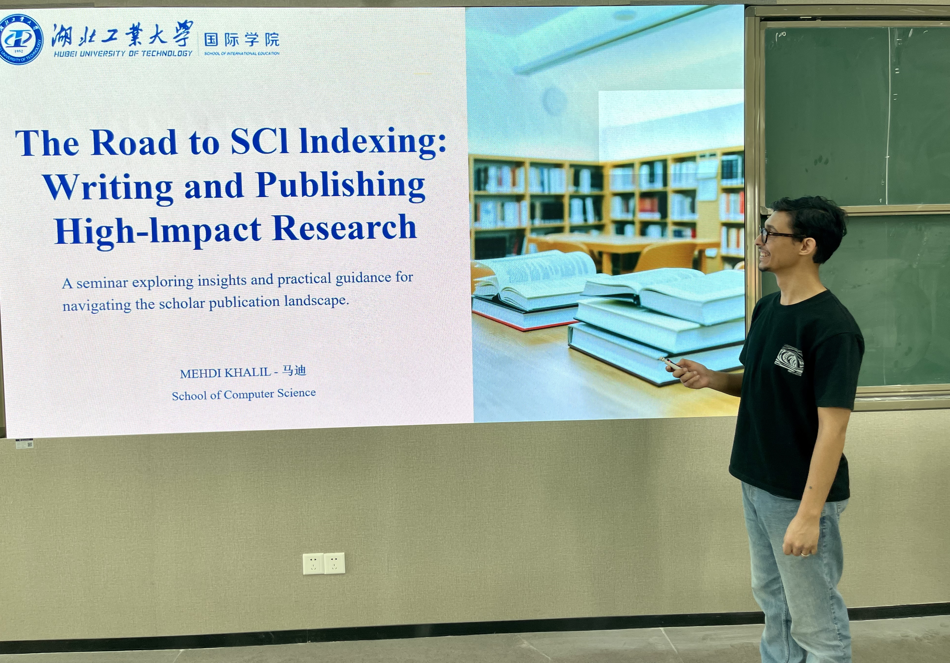 本次研讨会由威廉希尔WilliamHill官方网站培养办汤莉老师主持,特邀公司计算机公司2022级计算机科学与技术专业来华留学硕士研究生KHALIL MEHDI作了一篇题为“The Road to SCI Indexing: Writing and Publishing High-Impact Research”(SCI索引之路:高影响力研究论文的写作与发表)的学术报告。